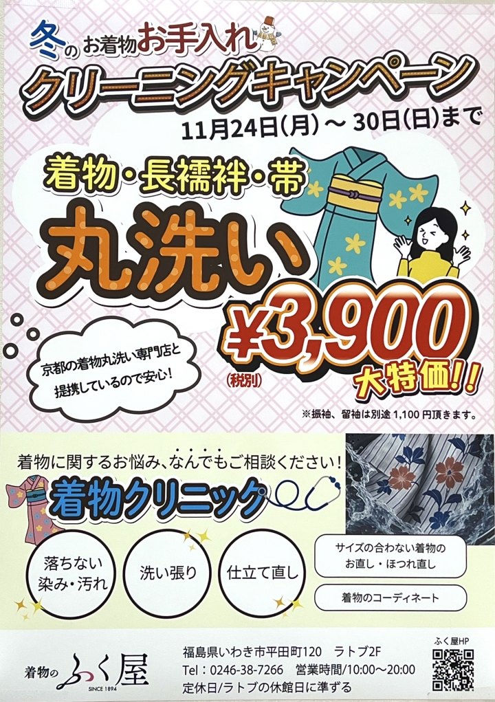 さて本日は「冬のお着物お手入れ!クリーニングキャンペーン♪」のご案内です。